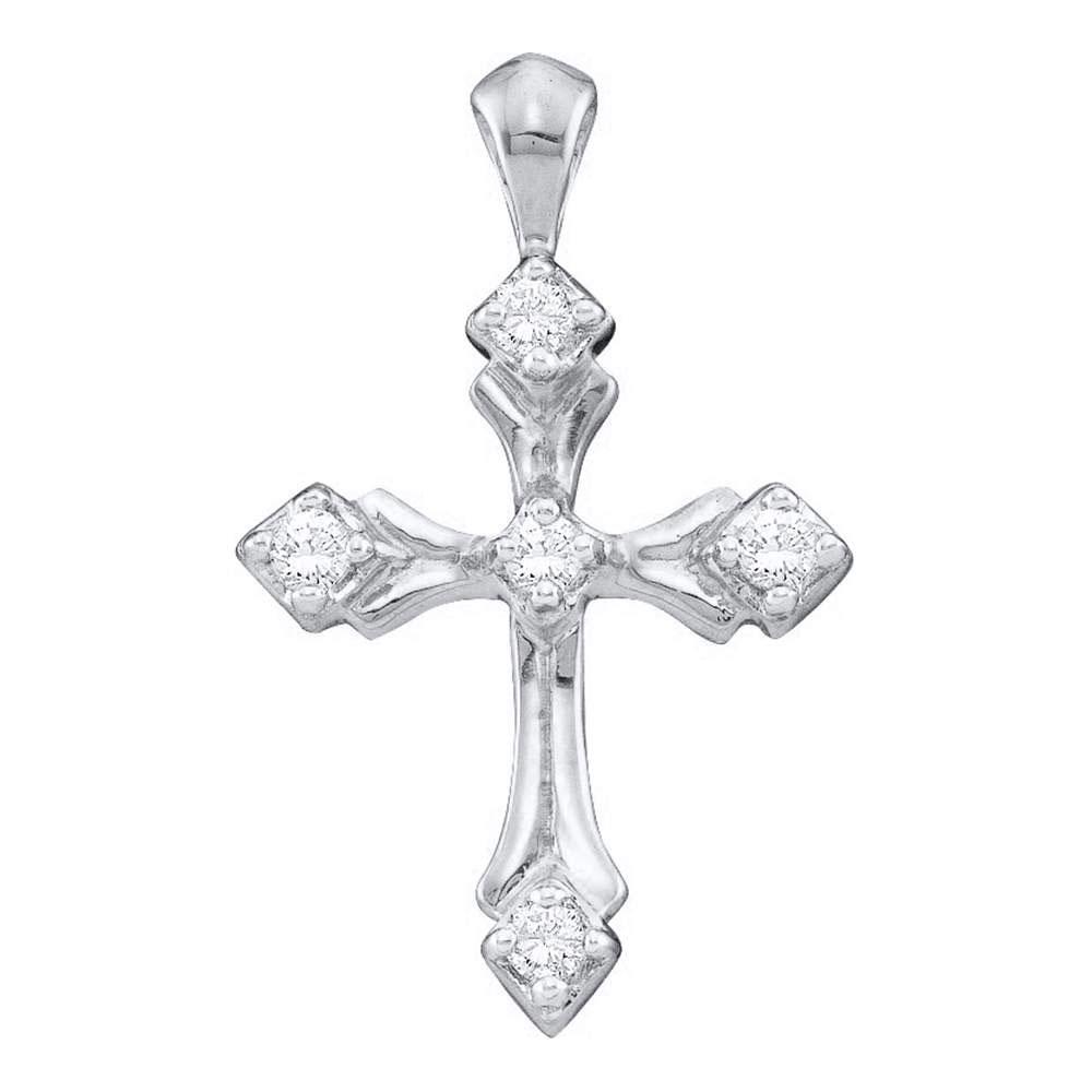 Description 14kt White Gold Womens Round Diamond Cross Pendant 1/10 Cttw Gemstone Details 1/10 Carats total weight Specifications 14kt White Gold Combined diamond weight of 1/10 carats total weight represents a range of 0.09 - 0.11 cts. t.w.